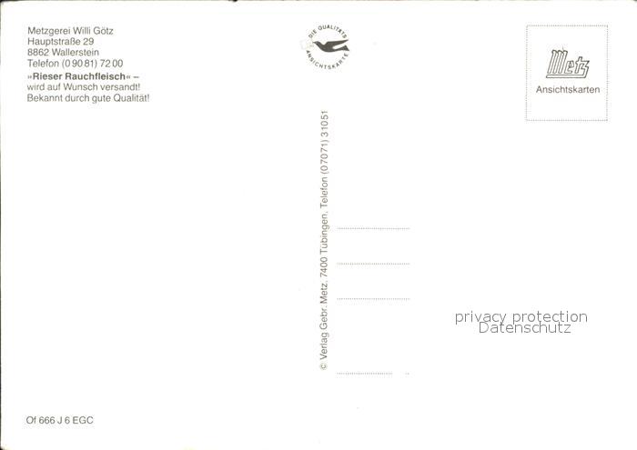 72542975 Wallerstein Metzgerei Willi Goetz postalisch nicht gelaufen Erhaltung siehe scans [AndreD76 kv012box] KatCode: 11110009779224