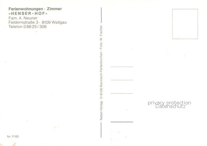73754108 Wallgau Ferienwohnungen Henser Hof Panorama postalisch nicht gelaufen Erhaltung siehe scans [WerneD78] KatCode: 11110009180136