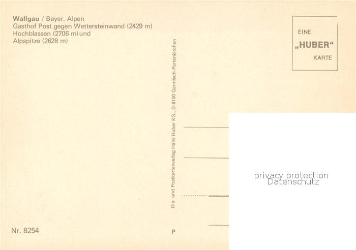 73077010 Wallgau Gasthof Post Wettersteinwand Hochblassen postalisch nicht gelaufen Erhaltung siehe scans [KathaD81] KatCode: 11110009180136