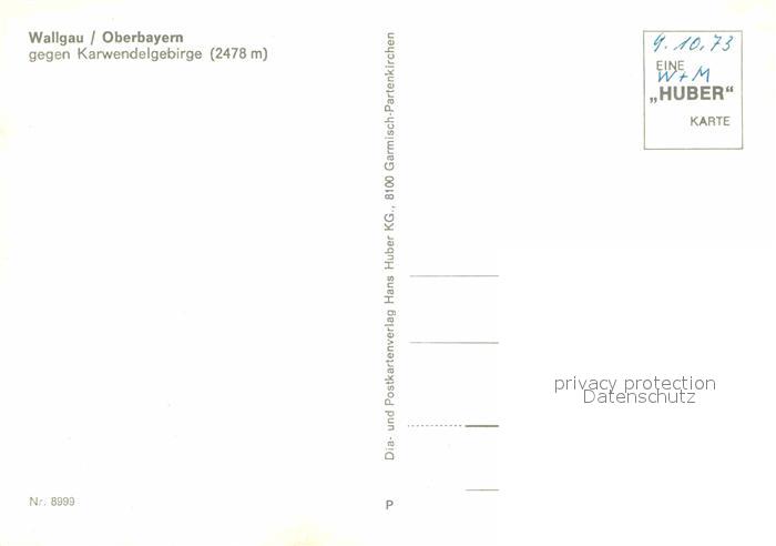 72742219 Wallgau gegen KarwendelgebirgeHuber Karte Nr 8999 postalisch nicht gelaufen Erhaltung siehe scans [FriedD77] KatCode: 11110009180136