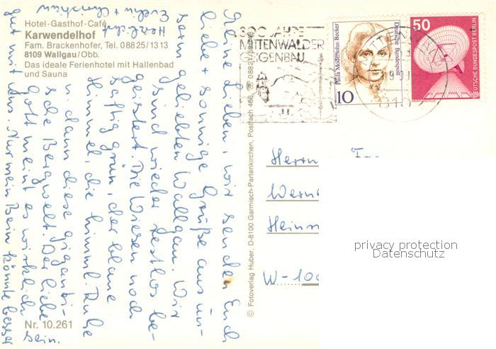 73765649 alte Postkarte Wallgau Hotel Gasthof Karwendelhof Panorama postalisch gelaufen Erhaltung siehe scans [WerneD78] KatCode: 11110009180136