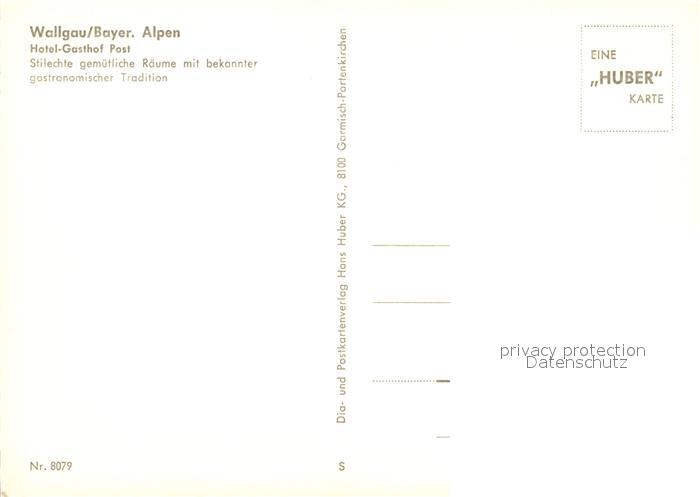 73103325 Wallgau Hotel Gasthof Post postalisch nicht gelaufen Erhaltung siehe scans [WerneD78] KatCode: 11110009180136