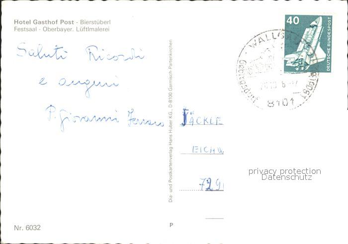 72129256 alte Postkarte Wallgau Hotel Gasthof Post Bierstueberl Festsaal Lueftlmalerei postalisch gelaufen Erhaltung siehe scans KatCode: 11110009180136