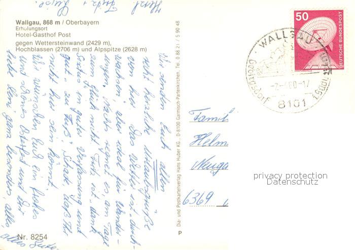 73747561 alte Postkarte Wallgau Hotel Gasthof Post mit Wettersteinwand und Hochblassen postalisch gelaufen Erhaltung siehe scans [WerneD78] KatCode: 11110009180136