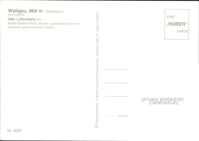 72599766 Wallgau Hotel Gasthof Post Oberbayerische Lueftlmalerei Huber Karte Nr 8291 postalisch nicht gelaufen Erhaltung siehe scans [FriedD77] KatCode: 11110009180136