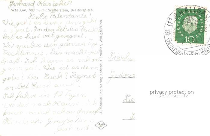 72632943 alte Postkarte Wallgau Kirche Wetterstein Dreitorspitze postalisch gelaufen Erhaltung siehe scans [FriedD77] KatCode: 11110009180136