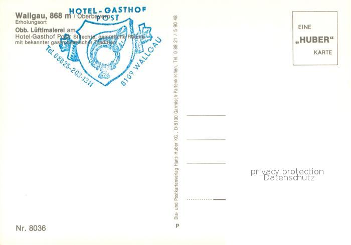 Wallgau Lueftlmalerei Hotel Gasthof Post Tulpen Huber Karte Nr. 8036