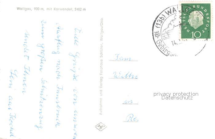73835056 alte Postkarte Wallgau mit Karwendel postalisch gelaufen Erhaltung siehe scans [WerneD78] KatCode: 11110009180136