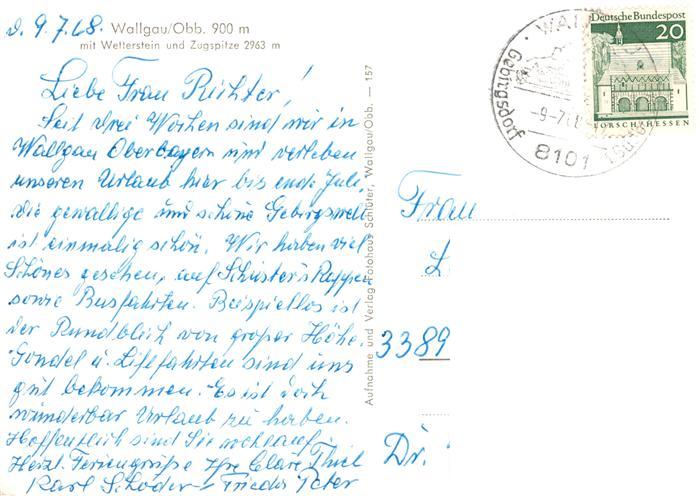 73868985 alte Postkarte Wallgau mit Wetterstein und Zugspitze postalisch gelaufen Erhaltung siehe scans [FriedD77] KatCode: 11110009180136
