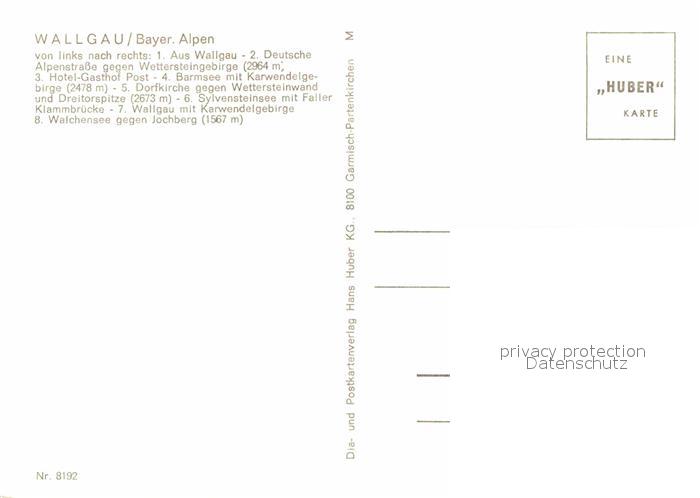 72865481 Wallgau Ortsmotive Kirche Alpenstrasse Wettersteingebirge Hotel Barmsee Karwendelgebirge Sylvensteinsee Faller Klammbruecke Walchensee Jochberg postalisch nicht gelaufen Erhaltung siehe scans [FriedD77] KatCode: 11110009180136