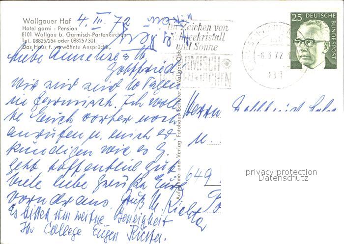 72093864 alte Postkarte Wallgau Wallgauer-Hof postalisch gelaufen Erhaltung siehe scans KatCode: 11110009180136