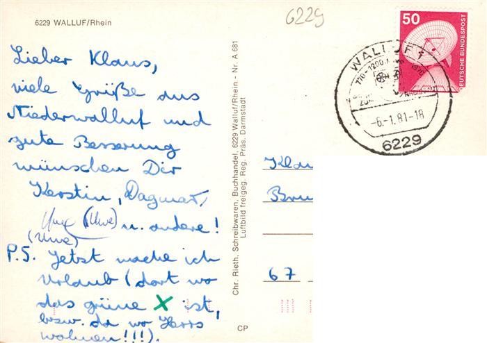 73935893 alte Postkarte Walluf Rhein Fliegeraufnahme postalisch gelaufen Erhaltung siehe scans [WerneD78] KatCode: 11110006439017
