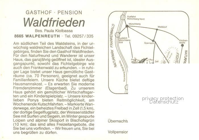 73641576 Walpenreuth Oberfranken Gasthof Pension Waldfrieden im Fichtelgebirge Aussichtspunkt postalisch nicht gelaufen Werbekarte (keine Postkarte) Erhaltung siehe scans [FriedD77] KatCode: 11110009475189