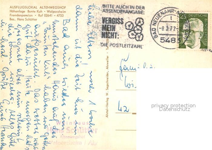 73106558 alte Postkarte Walporzheim Ausflugslokal Altenwegshof postalisch gelaufen Erhaltung siehe scans [KathaD81] KatCode: 11110007131007
