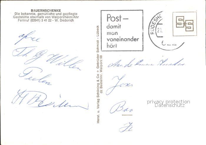 72243199 alte Postkarte Walporzheim Bauernschenke postalisch gelaufen Erhaltung siehe scans KatCode: 11110007131007