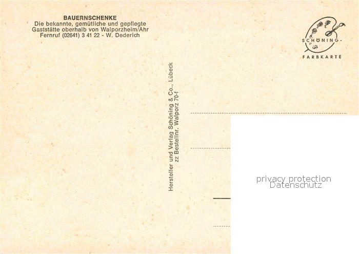 72784004 Walporzheim Bauernschenke postalisch nicht gelaufen Erhaltung siehe scans [WerneD78] KatCode: 11110007131007