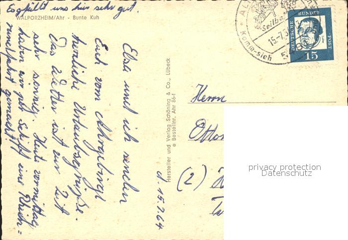 72137297 alte Postkarte Walporzheim Bunte Kuh postalisch gelaufen Erhaltung siehe scans KatCode: 11110007131007