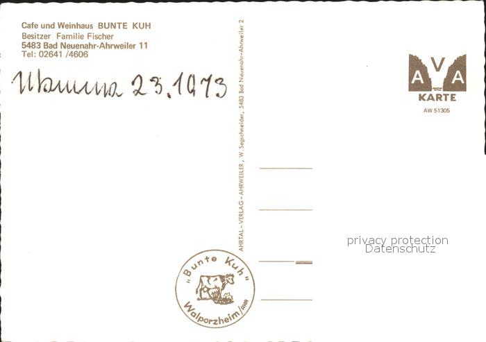 71859862 Walporzheim Cafe-Weinhaus Bunte Kuh postalisch nicht gelaufen Erhaltung siehe scans KatCode: 11110007131007