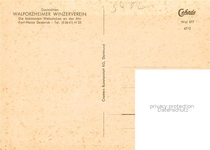 73834152 Walporzheim Gaststaetten Walporzheimer Winzerverein postalisch nicht gelaufen Erhaltung siehe scans [FriedD77] KatCode: 11110007131007