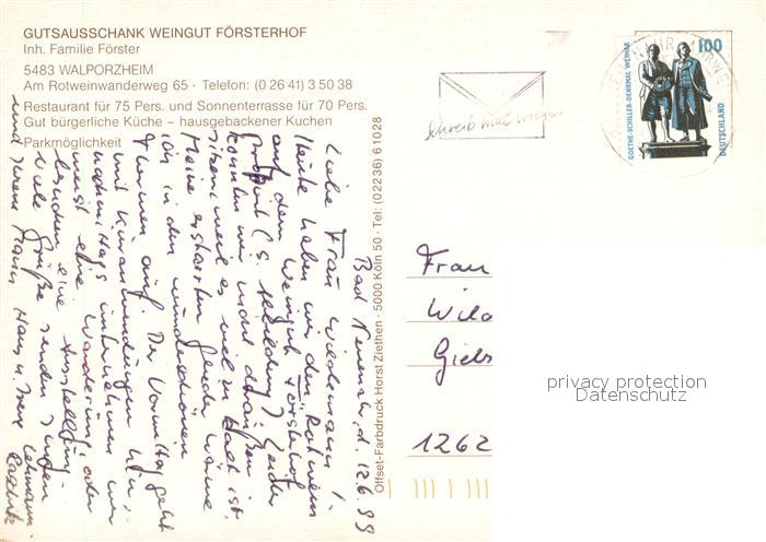 73656535 alte Postkarte Walporzheim Gutsausschank Weingut Foersterhof Terrasse postalisch gelaufen Erhaltung siehe scans [WerneD78] KatCode: 11110007131007