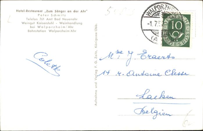 40939228 Walporzheim Hotel Restaurant Zum Sänger an der Ahr KatCode 11110007131007