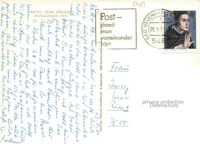74054051 alte Postkarte Walporzheim Hotel zum Saenger postalisch gelaufen Erhaltung siehe scans [FriedD77] KatCode: 11110007131007