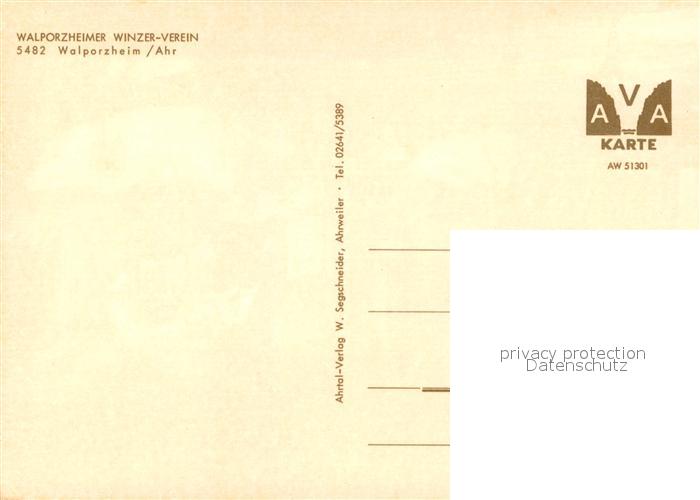 73711819 Walporzheim Walporzheimer Winzerverein Kellerbar postalisch nicht gelaufen Erhaltung siehe scans [WerneD78] KatCode: 11110007131007