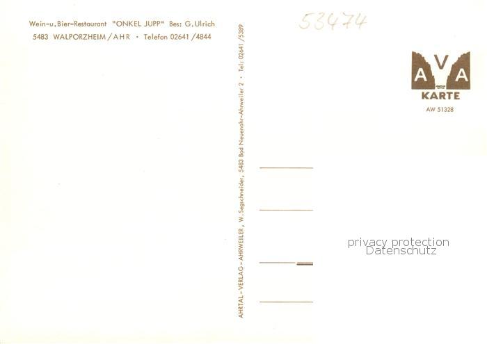 73865625 Walporzheim Wein- und Bierrestaurant Onkel Jupp postalisch nicht gelaufen Erhaltung siehe scans [FriedD77] KatCode: 11110007131007