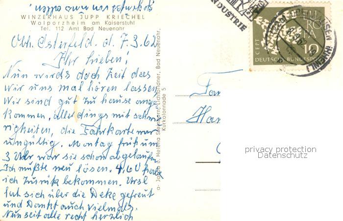 73561406 alte Postkarte Walporzheim Winzerhaus Jupp Kriechel Trompeter postalisch gelaufen Erhaltung siehe scans [FriedD77] KatCode: 11110007131007