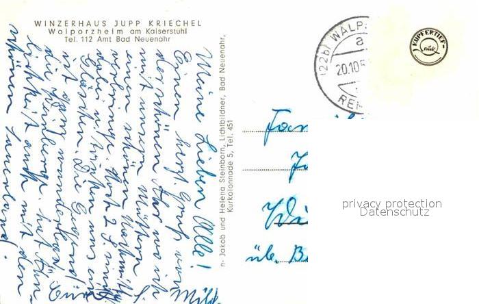 72900625 alte Postkarte Walporzheim Winzerhaus Jupp Kriechel postalisch gelaufen Erhaltung siehe scans [AndreD76] KatCode: 11110007131007