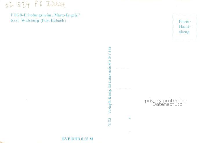 73830522 Walsburg FDGB Erholungsheim Marx Engels postalisch nicht gelaufen Erhaltung siehe scans [WerneD78] KatCode: 11110016075127