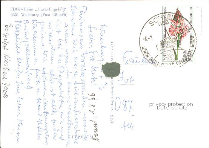 72232650 alte Postkarte Walsburg FDGB Heim Marx Engels postalisch gelaufen Erhaltung siehe scans KatCode: 11110016075127