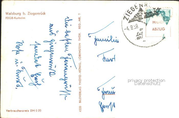 72327276 alte Postkarte Walsburg FDGB Kurheim postalisch gelaufen Erhaltung siehe scans KatCode: 11110016075127