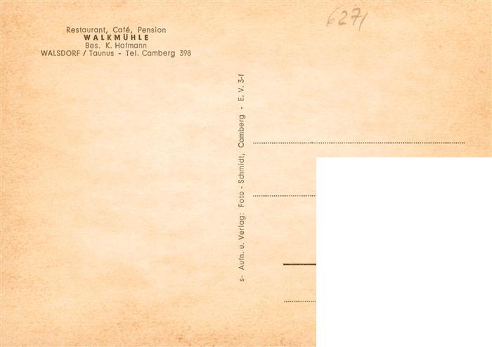 73890807 Walsdorf Taunus Idstein Cafe Restaurant Walkmuehle postalisch nicht gelaufen Erhaltung siehe scans [WerneD78] KatCode: 11110006439008
