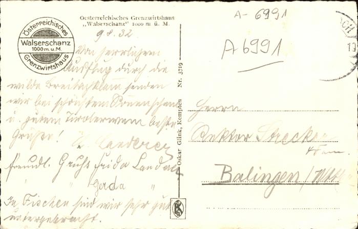 11284338 Walserschanz Kleinwalsertal Grenzwirtshaus KatCode 11390