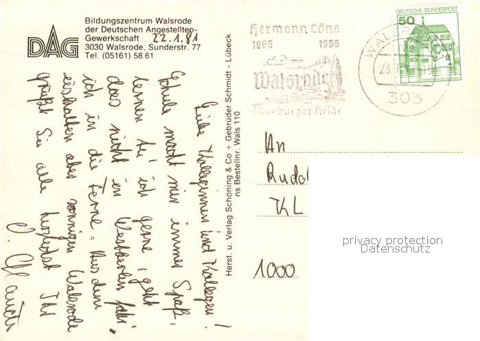 73542447 alte Postkarte Walsrode Lueneburger Heide Bildungszentrum DAG postalisch gelaufen Erhaltung siehe scans [KathaD81] KatCode: 11110003358022