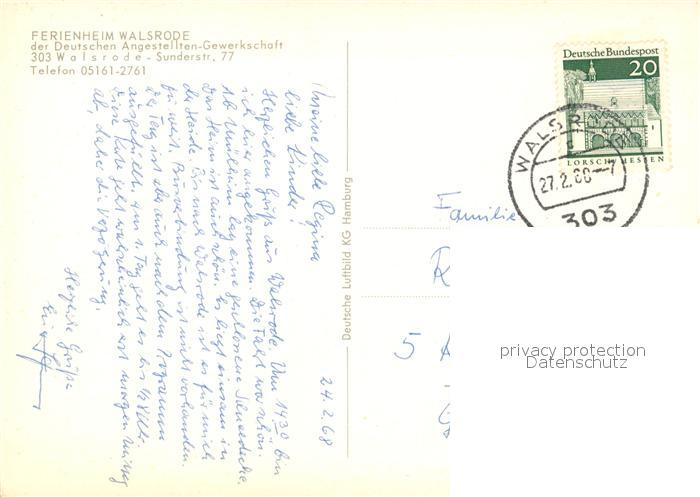 73089230 alte Postkarte Walsrode Lueneburger Heide Fliegeraufnahme Ferienheim Walsrode postalisch gelaufen Erhaltung siehe scans [NatalD47] KatCode: 11110003358022
