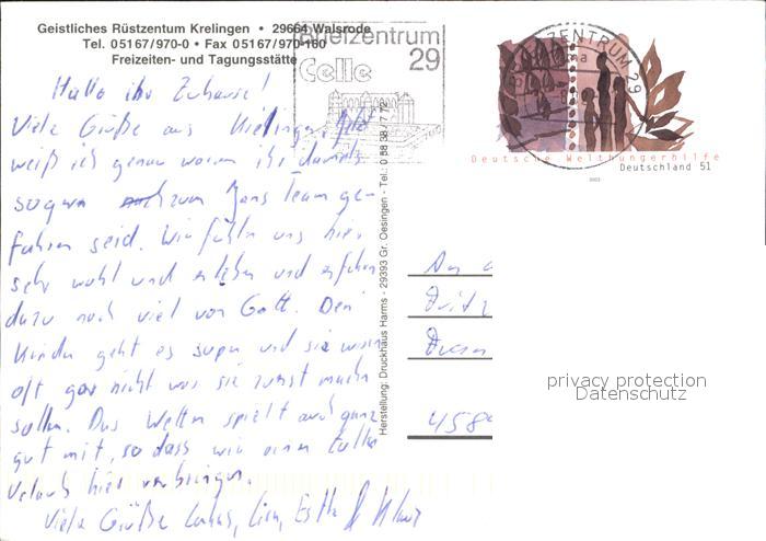 72083816 alte Postkarte Walsrode Lueneburger Heide Geistliches Ruestzentrum Krelingen Glaubenshalle Tagungsstaette Fontane postalisch gelaufen Erhaltung siehe scans KatCode: 11110003358022