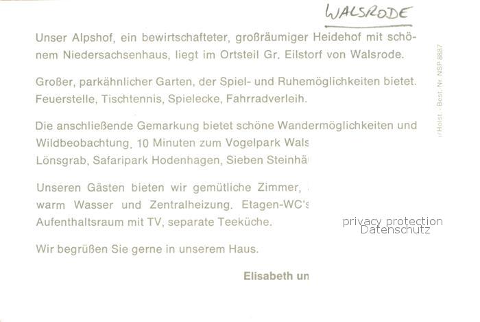 73730622 Walsrode Lueneburger Heide Hof Lohmann Niedersachsenhaus Informationen postalisch nicht gelaufen Werbekarte (keine Postkarte) Erhaltung siehe scans [LiesaD40] KatCode: 11110003358022