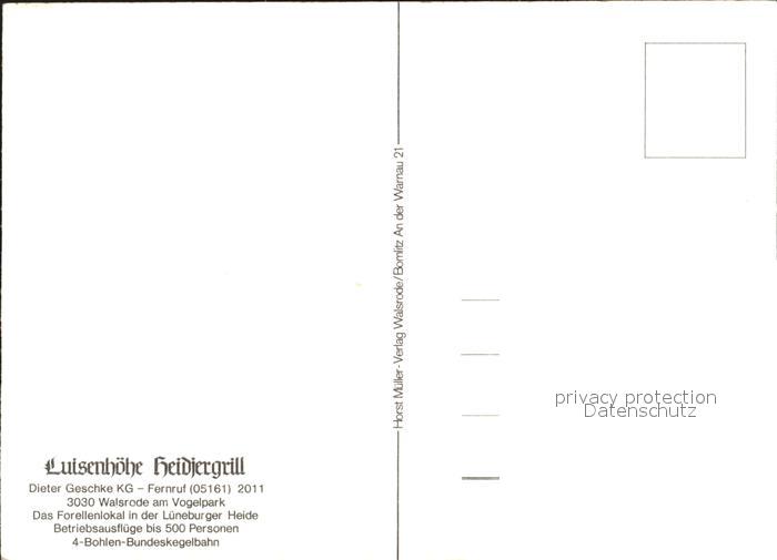 72074489 Walsrode Lueneburger Heide Luisenhoehe Heidjergrill postalisch nicht gelaufen Erhaltung siehe scans KatCode: 11110003358022