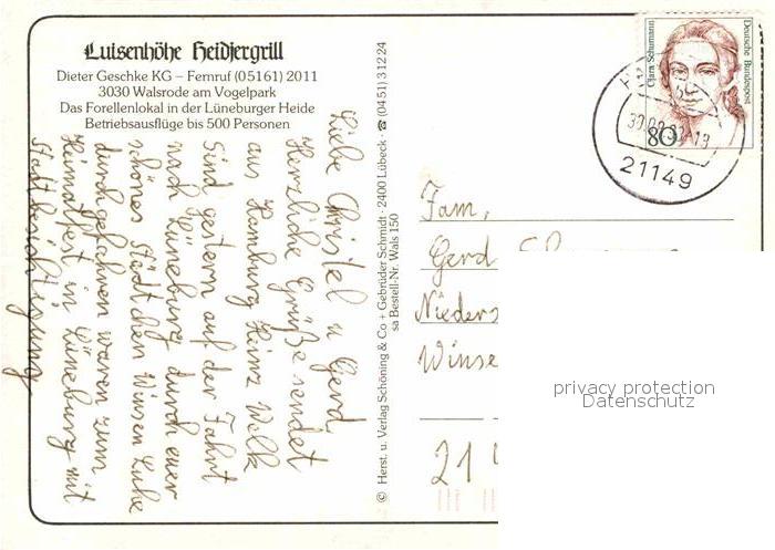 72840694 alte Postkarte Walsrode Lueneburger Heide Luisenhoehe Heidjergrill am Vogelpark postalisch gelaufen Erhaltung siehe scans [FriedD77] KatCode: 11110003358022