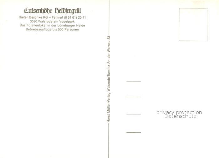 73780575 Walsrode Lueneburger Heide Luisenhoehe Heidjergrill Forellenlokal Gaststube Brunnen Rinderherde Pferdekutsche Muehlrad postalisch nicht gelaufen Erhaltung siehe scans [WerneD78] KatCode: 11110003358022