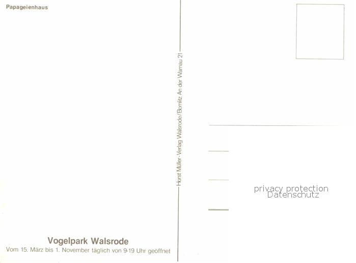 72714670 Walsrode Lueneburger Heide Papageienhaus postalisch nicht gelaufen Erhaltung siehe scans [FriedD77] KatCode: 11110003358022