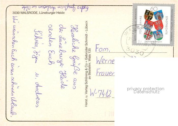 73177576 alte Postkarte Walsrode Lueneburger Heide Rathaus Wasserspiele Gaststaette postalisch gelaufen Erhaltung siehe scans [FriedD77] KatCode: 11110003358022