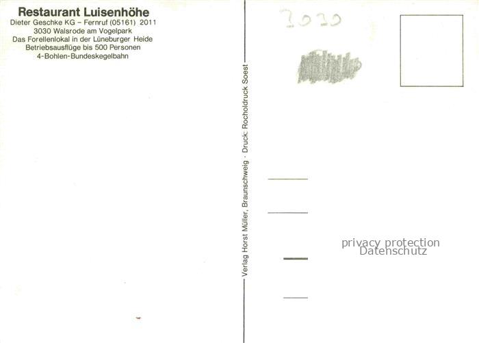 74084752 Walsrode Lueneburger Heide Restaurant Luisenhoehe Vogelpark Gastraeume Kegelbahn postalisch nicht gelaufen Erhaltung siehe scans [WerneD78] KatCode: 11110003358022