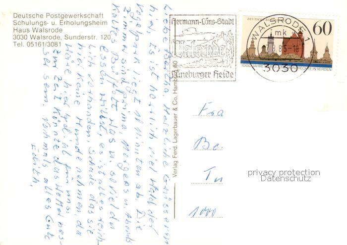 73542448 alte Postkarte Walsrode Lueneburger Heide Schulungs Erholungsheim Deutsche Postgewerkschaft postalisch gelaufen Erhaltung siehe scans [KathaD81] KatCode: 11110003358022