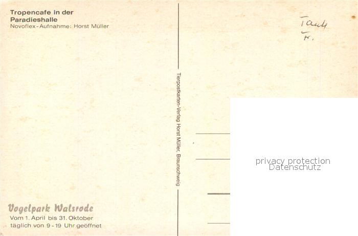 72959572 Walsrode Lueneburger Heide Tropencafe Paradieshalle postalisch nicht gelaufen Erhaltung siehe scans [NatalD47] KatCode: 11110003358022