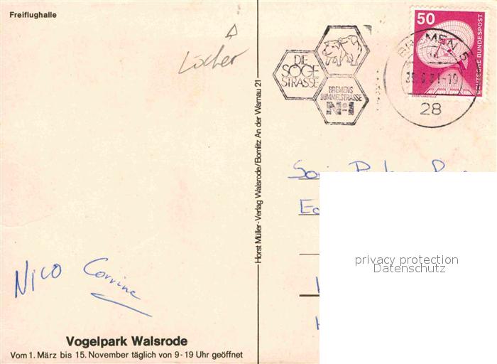 72655706 alte Postkarte Walsrode Lueneburger Heide Vogelpark postalisch gelaufen Erhaltung siehe scans [LiesaD40] KatCode: 11110003358022
