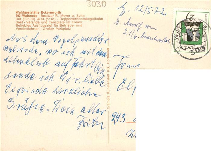 73894548 alte Postkarte Walsrode Lueneburger Heide Waldgaststaette Eckernworth postalisch gelaufen Erhaltung siehe scans [WerneD78] KatCode: 11110003358022
