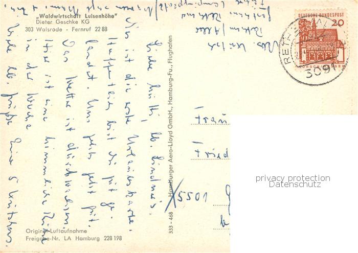 73761893 alte Postkarte Walsrode Lueneburger Heide Waldwirtschaft Luisenhoehe Fliegeraufnahme postalisch gelaufen Erhaltung siehe scans [FriedD77] KatCode: 11110003358022